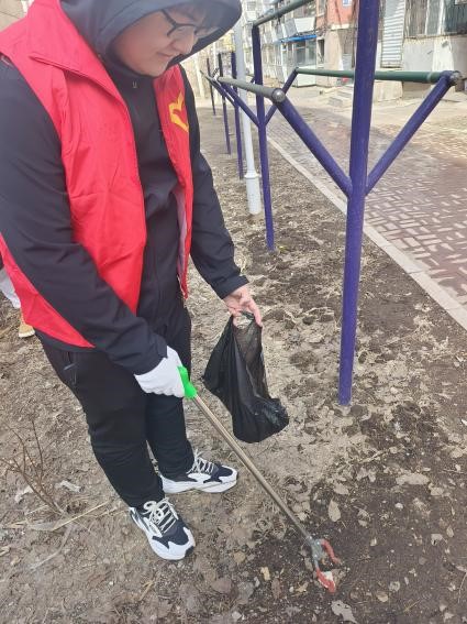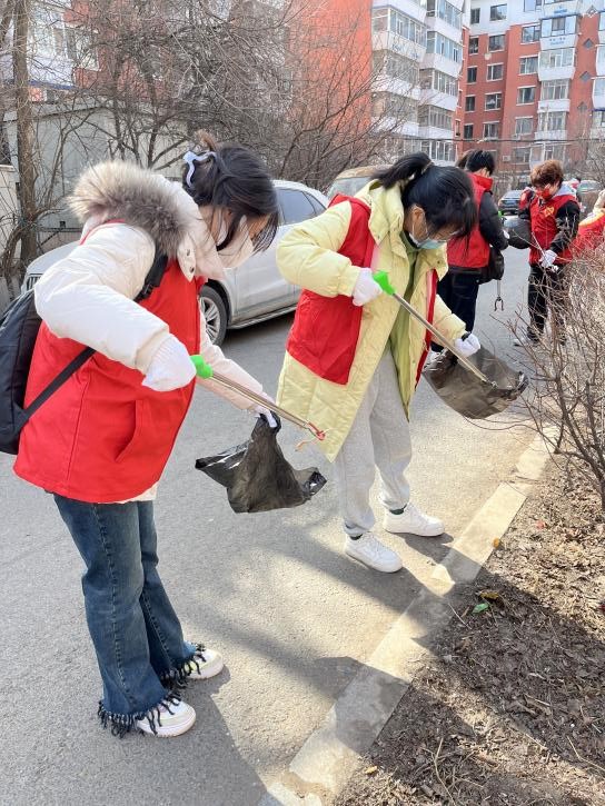 3月31日上午9时,志愿者们在湖畔北门停车场集合后乘坐大巴前往建工社区。到达建工社区后,红旗街道建工社区书记安爽热情接待了志愿者们,详细介绍了志愿活动的任务。在社区工作人员的安排下,志愿者们兵分两路进入华侨新村小区,一组志愿者手持扫把、小铲子等卫生工具,对单元楼道里的小广告进行了集中清理;另一组志愿者则带着垃圾夹清理公共活动区域的垃圾。清理过程中,志愿者们还积极地向居民宣传环境保护和卫生清洁的重要性,在社区工作人员和志愿者们的共同努力下,华侨新村小区整体面貌焕然一新。清理结束后,志愿者们还主动帮助社区工作人员搬运了小区老年群体需要的被褥。为了表达感谢,工作人员给志愿者们提供了热水,并对志愿者们的工作给予了肯定。团队成员也纷纷表示通过帮助他人,服务社会感受到了自己的价值,收获了快乐。下午13:30,另一组志愿者团队同样来到了建工社区,在社区工作人员分发了手套,口罩及清扫工具后,志愿者们对华侨新村小区内的白色垃圾进行了清扫,使小区周边卫生环境得到有效改善。