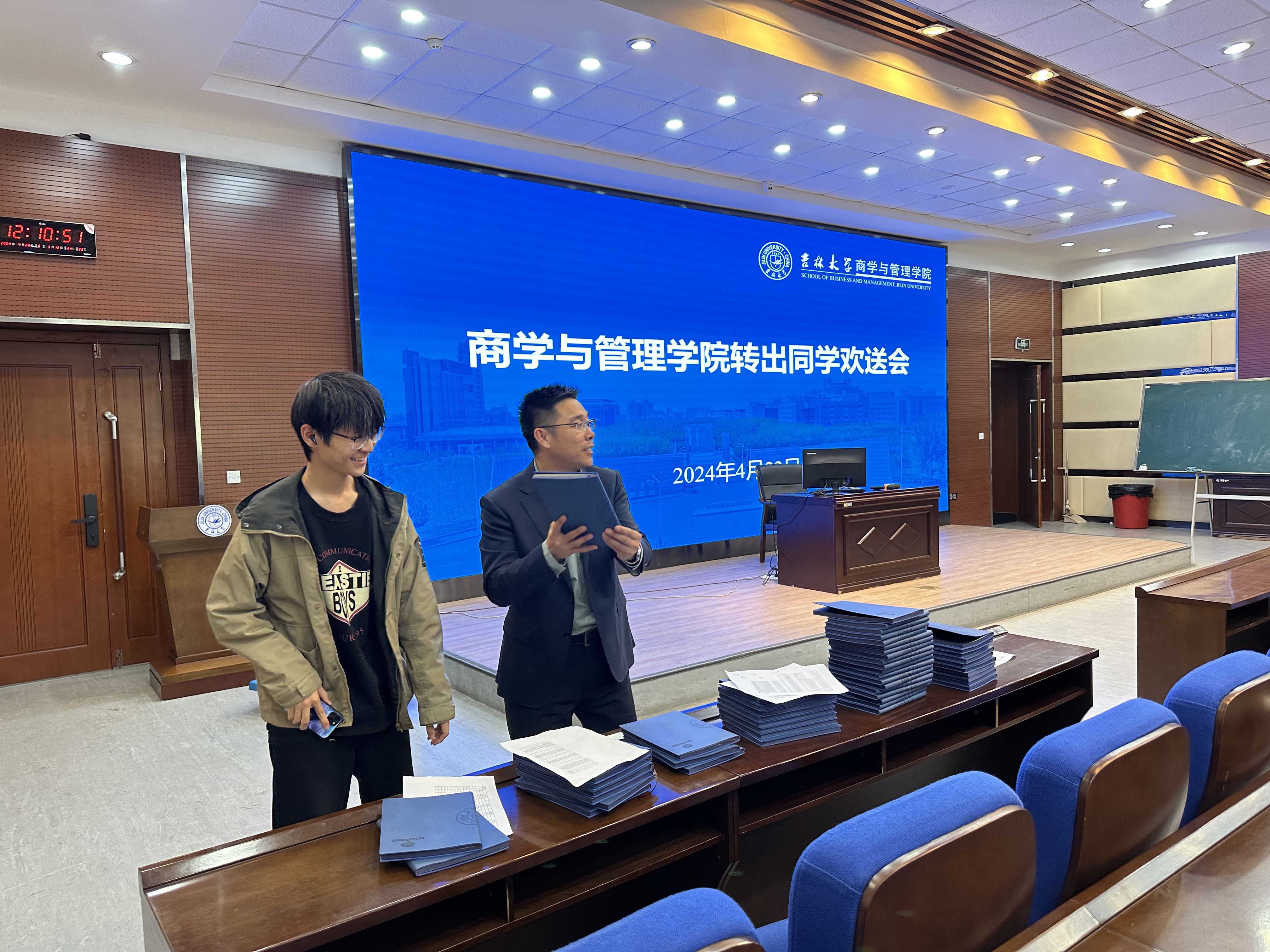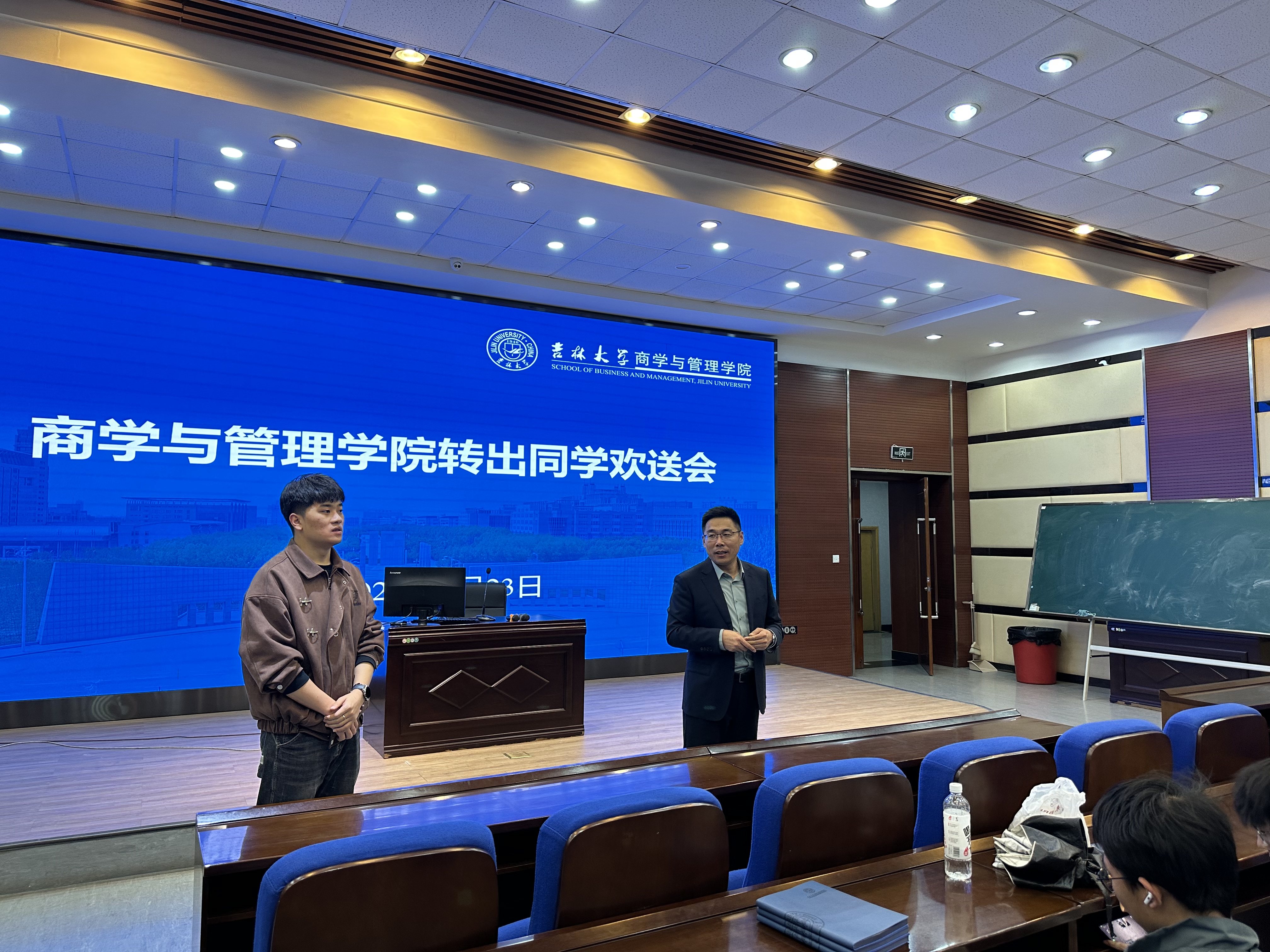 欢送会伊始,李帅老师首先对转出专业的同学们通过努力转入自己心仪专业表示衷心祝贺,同时对同学们表达了殷切期望。希望大家步入新学院能够迅速适应环境,继续保持学习状态,把在商管学院习得的优良作风在新的学院中继续发扬下去,并鼓励他们在未来的道路上继续勇往直前,创造更加辉煌的人生。