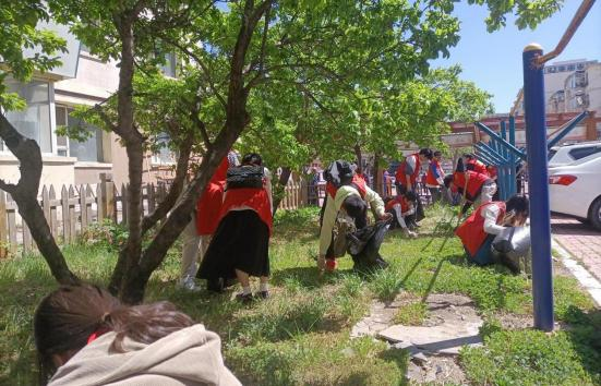 最后,我院学生前往社区指定位置,在社区工作人员的带领指导下进行了清洁、绿化等环保活动,通过劳动美化社区环境,培养了学生们的绿色环保意识和积极参与社会实践的社会责任感。
