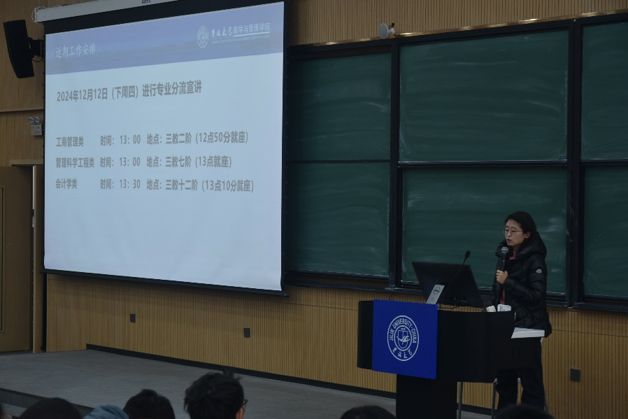关于网络舆论方面,刘天目老师倡导大家拥有辨别是非的能力,不随意转发,不随意评论,做一个好网民。同时,互联网信息纷繁复杂,同学们要保持清醒头脑,注意防范电信诈骗,增强反诈意识。随后,她向大家细致说明近期工作上的具体安排和专业分流宣讲。会议最后,刘天目老师与谭凯兮老师希望2024级新生在这个期末复习阶段劳逸结合,专注备战考试,最终收获佳绩。