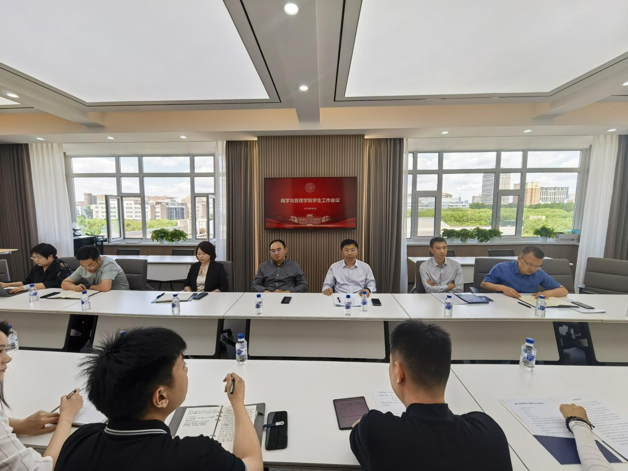 在东荣六楼会议室召开学生工作会议,传达学校近期工作会议精神,并就学生工作专项行动进行专题研究与部署。学院党委书记赵军、常务副院长隋建利、党委副书记李帅、党委副书记兼副院长马腾、副院长马捷、副院长张小宇、行政副院长隋祎宁以及全体本科生辅导员和研究生辅导员参加会议。