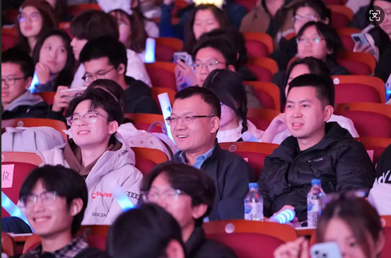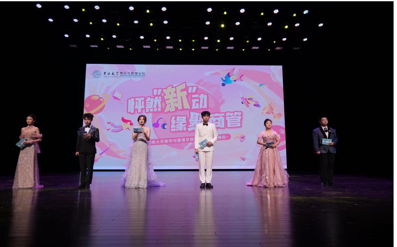 “怦然‘新’动,缘聚商管”2025年迎新晚会在鼎新大讲堂举行。学院党委副书记兼副院长马腾老师,学生工作办公室主任兼2025级辅导员丁越老师,2025级辅导员刘家邦老师,2023级团学组织主要学生干部及新生辅导员助理与2025级新生及部分新生家长共同观看演出。