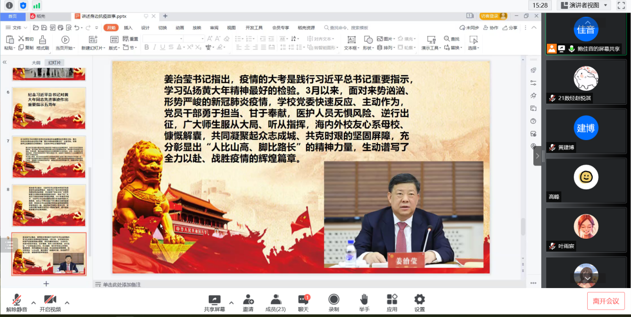 硕士研究生第一党支部在线上开展“学习黄大年精神”暨“讲述身边抗疫故事”系列主题党日活动。P站