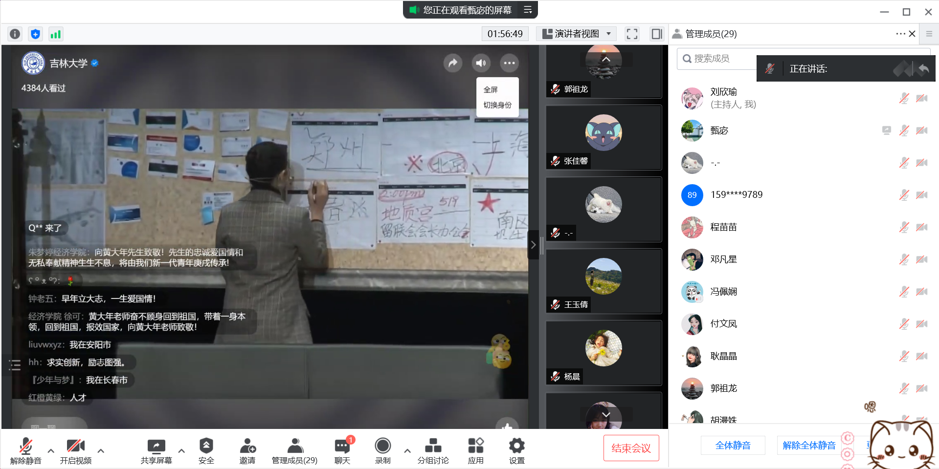 正值习近平总书记对黄大年同志先进事迹作出重要指示五周年之际,同时长春市抗疫取得了显著成果,为了进一步弘扬黄大年精神和抗疫精神,增强党员的荣誉感和使命感,硕士研究生第三党支部开展了“学习黄大年精神”暨“讲述身边抗疫故事”系列主题党日活动,参会成员为辅导员甄老师和硕士研究生第三党支部党员。