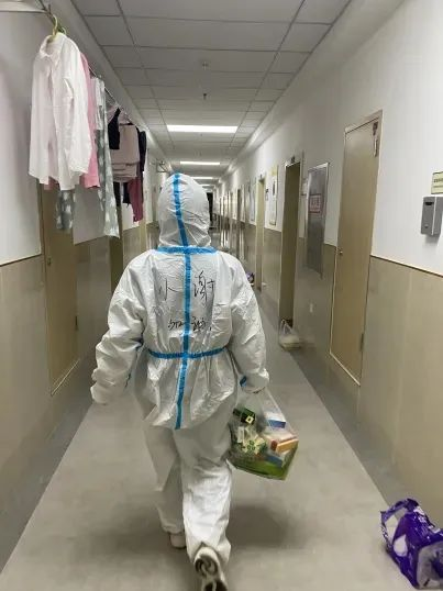 谢晓萌同学是寝室静态管理以来,第一批响应学院志愿服务工作的志愿者,走廊内总能看到她身着防护服或者隔离衣的身影,不知疲惫地为同学们服务。