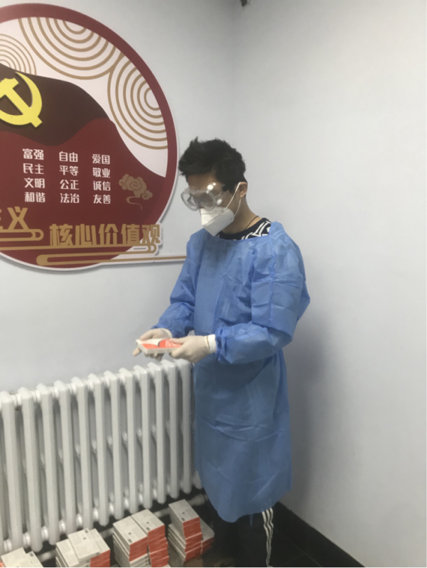 作为志愿服务工作主要负责人之一,她多次实际参与到志愿服务中来,保障三餐一水、各种物资和抗原自测的发放。同时她还不忘负责与各层协调物资,把控物资发放节点。每一份被合理调送的物资,都是她对于职责的彰显与诠释。