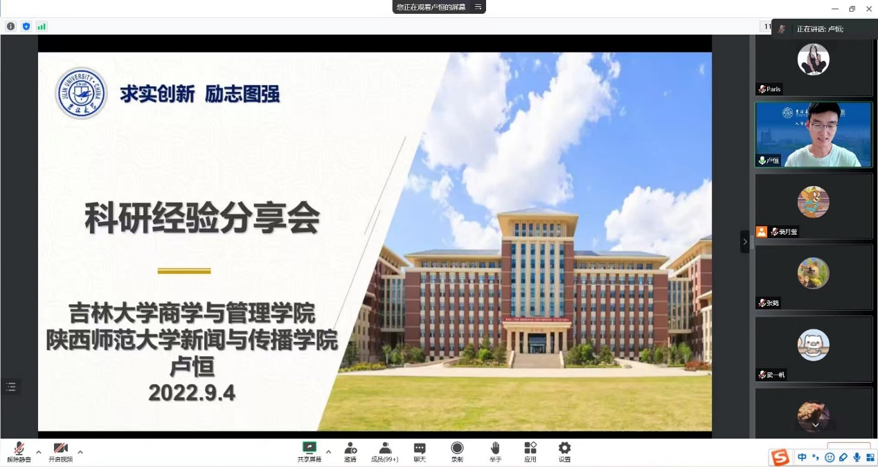 为了让同学们了解如何进行学术研究,营造一个学术氛围浓厚的环境,9月4日,我院邀请了2022级优秀博士毕业生卢恒,于线上开展P站