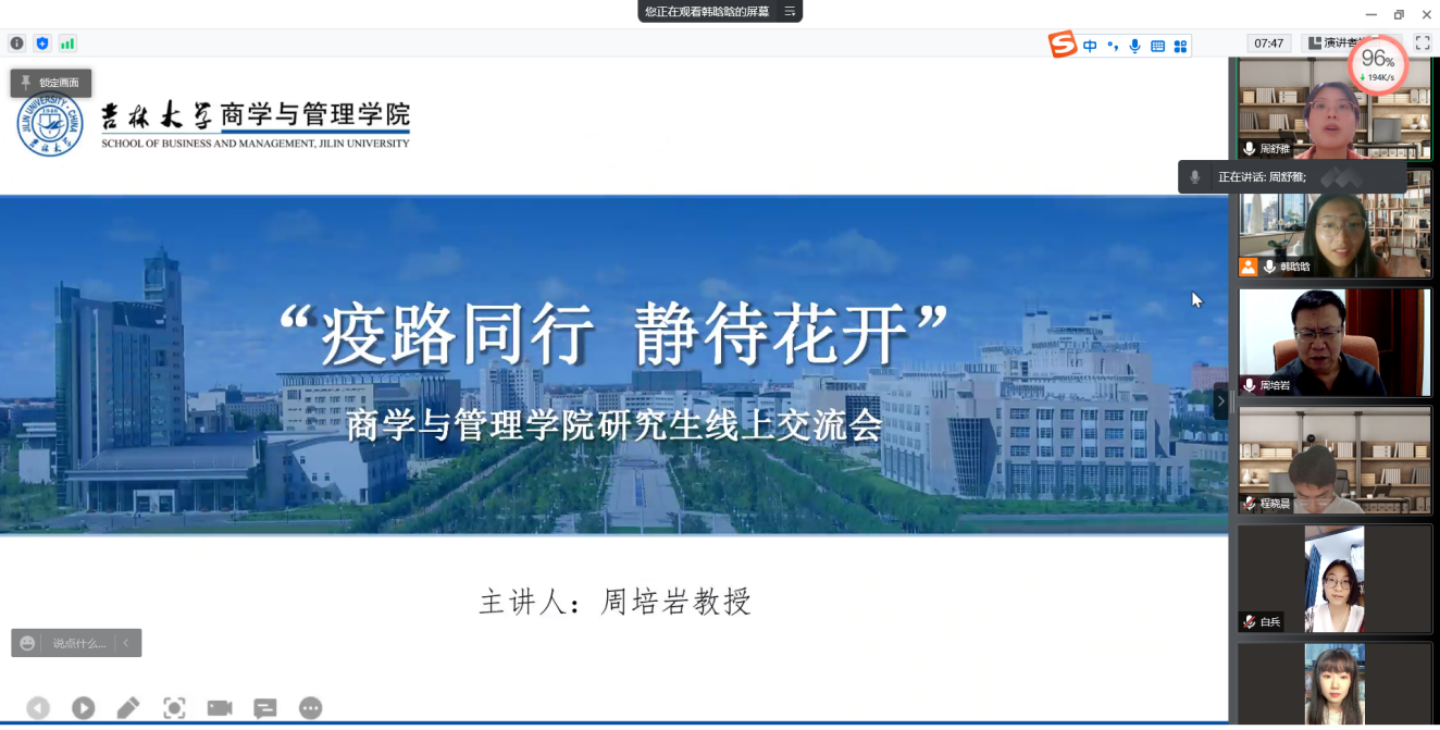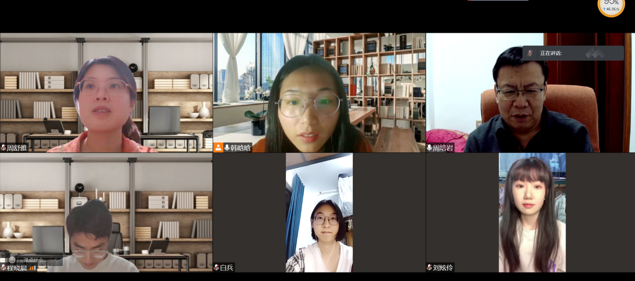 会计系周培岩教授组织召开线上交流会议,博士研究生周舒雅、刘炫伶,硕士研究生韩晗晗、程晓晨及本科生白兵共同参会。