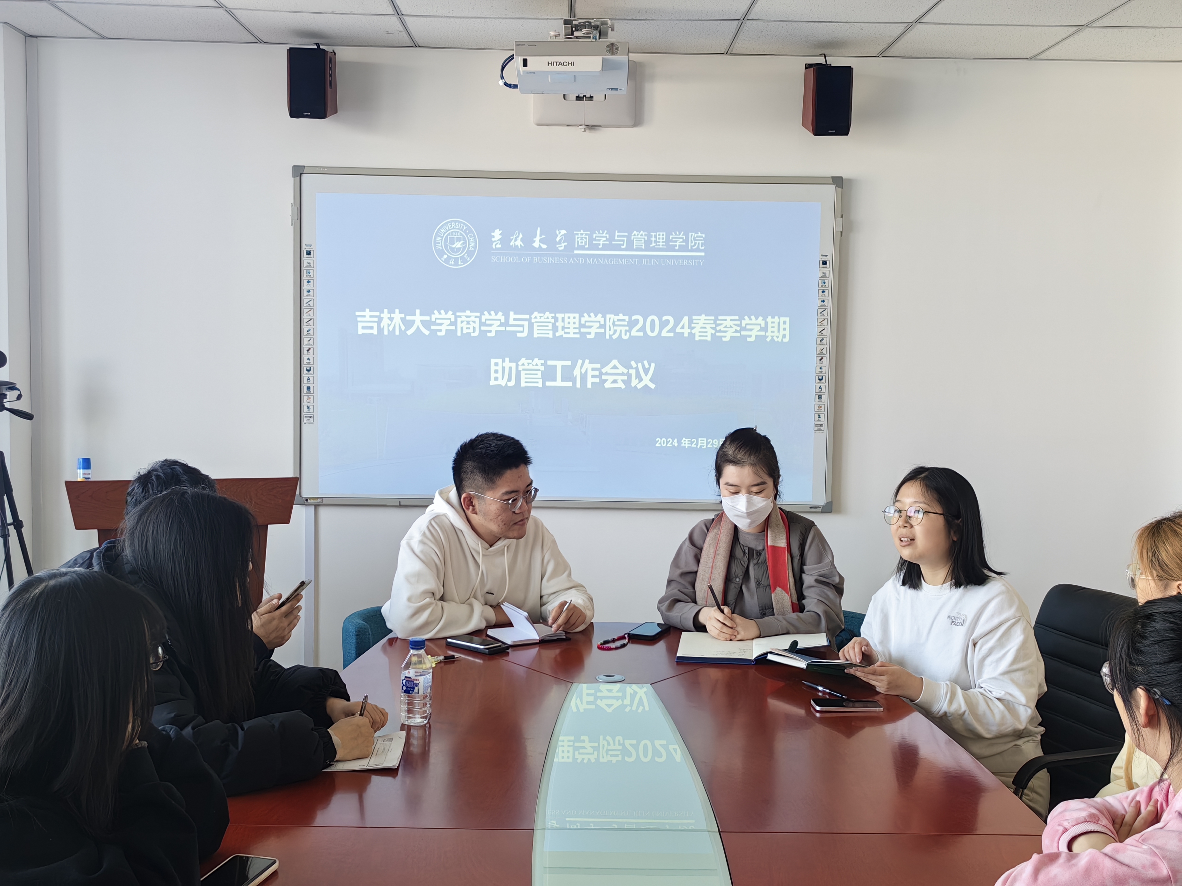 研究生管理办公室召开2024年春季学期研究生德育助管交流座谈会,会议由研究生管理办公室主任甄宓老师主持,研究生辅导员裴月莹老师、王敬乔老师及全体德育助管参加会议。