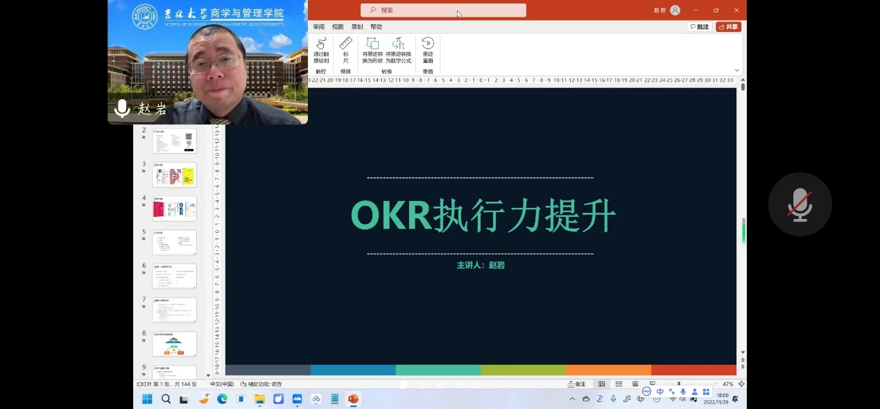 赵岩副教授专注于OKR执行力提升,OKR是具有成长性的执行文化,是组织、团队和个人协同的思维,深入阐述OKR与KPI的关系,通过举例的方式讲授如何实施有效的OKR工作法以提升企业执行力。